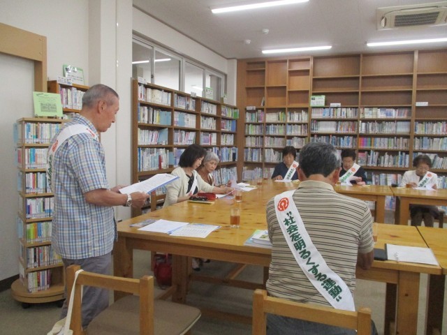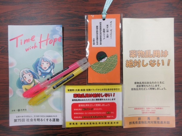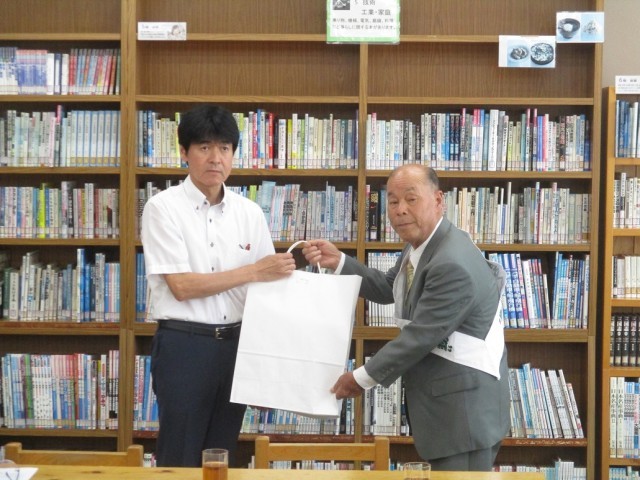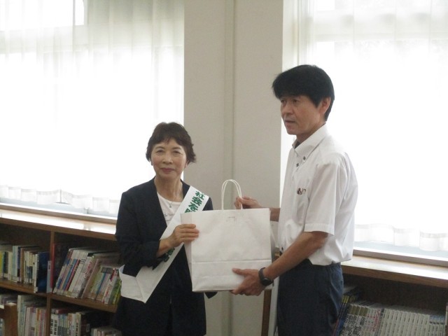 また、更生保護女性会からは薬物乱用防止にかかわる栞を贈呈いただきました。最後に懇談を行い、小野地区子ども達の健全育成について情報交換を行いました。暑い中、小野地区保護司会、更生保護女性会の皆様、ありがとうございました。