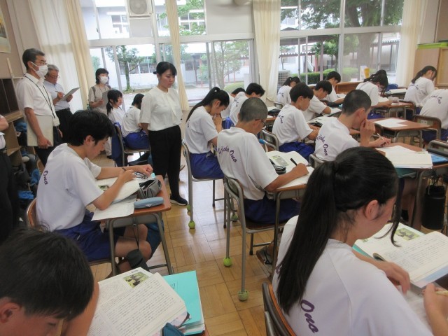 藤岡市教育委員会の田中教育長さんはじめ、教育委員の皆様に訪問いただき、本校における藤岡教育の進捗状況をご覧いただきました。学習環境が整えられ、生徒が落ち着いて意欲的に学習に取り組んでいる様子を褒めていただきました。(写真は、1年1組社会、1年2組社会、3年3組理科、2年2組技術、3年2組国語、5組理解)