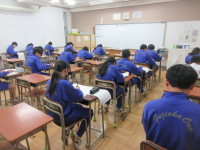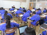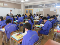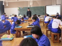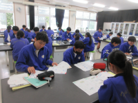 授業を覗くと、教科担当の他、支援員の先生、教育実習生と3名が生徒を個別支援して...
