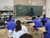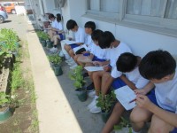 期末テストの返却・確認をした後、エダマメの観察を行いました。先週から10㎝も成...