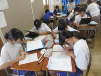 期末テストに向け、既習事項の復習を行いました。教え会いながら復習している生徒、...