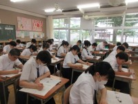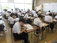 期末テスト1日目は、社会、技家、国語、英語の4教科です。終了時間まで粘り強く問...