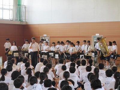 式に引き続き、これからコンクールや展覧会を控えた吹奏楽部と美術部に対してエールを送る文化部壮行会を行いました。