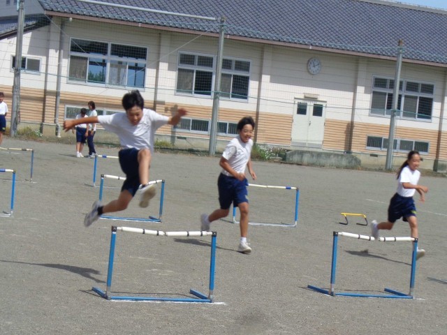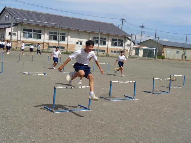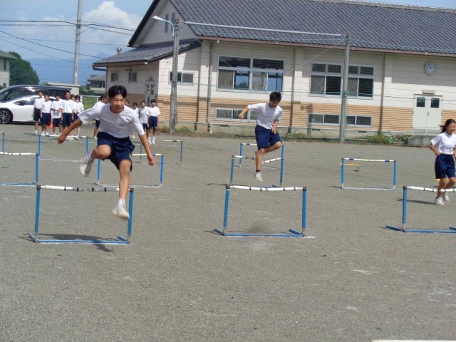 「暑さ寒さも彼岸まで」。ようやく過ごしやすい秋めいた気候になりました。校庭での体育も気持ちよくできますね。1年2組の保体の授業では、ハードルに取り組んでいましたが、みんな軽快な足取りで楽しそうに走っていました。