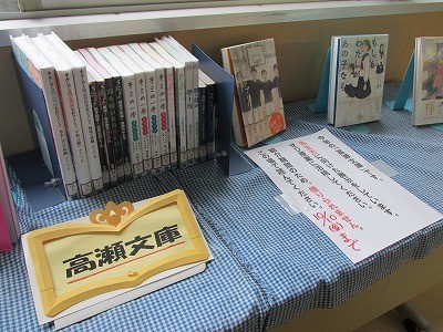 9月8日付でご紹介した「高瀬文庫」について、巡回司書さんのご尽力で、今年ご寄贈いただいた書籍の展示を、現在、正面玄関脇でおこなっています。