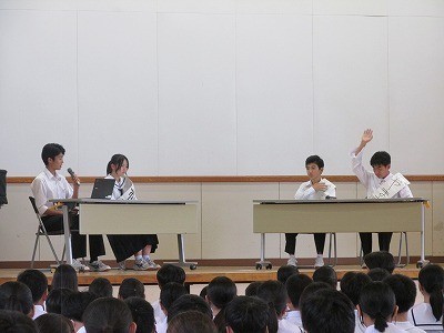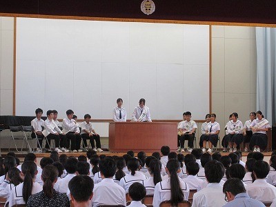 どの候補者もはっきりと自分の意志を表明することができ、また、公開討論会も行われ、本校の「5つのいっぱい運動」に、6つ目を加えるとしたらどんな内容かをテーマに協議するなど、充実した立会演説会となりました。