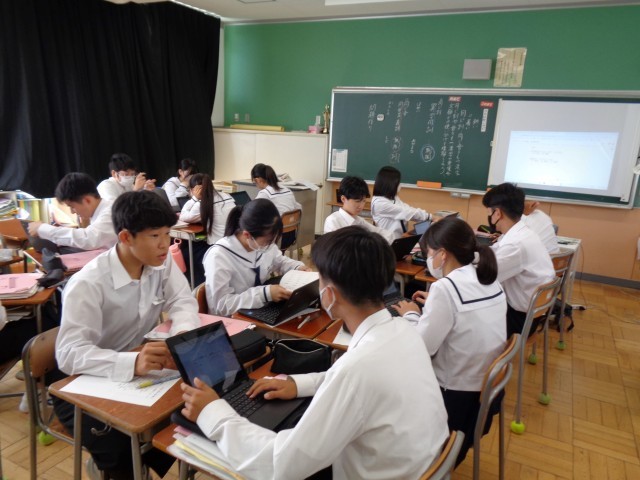 2年2組の国語では漢字の学習中。同音異義語を調べていました。例題の「今回のテストはイガイとできた」「責任をツイキュウする」の当てはまるのは「以外・意外」「追究・追求・追及」のどれかな?大人でもPCで入力する時に変換ミスをしがちなこの熟語。正解はどれかみんなで答えた後、グループに分かれて同音異義語クイズを考えることになりました。制限時間は5分。どんな問題を作ろうか、活発に相談していました。