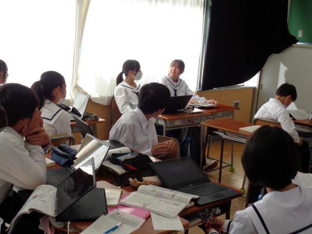 今日の1年3組の国語では、前回作成した故事成語の4コママンガをみんなで共有した後、故事成語を使ったショードコントを作って、実生活で実際に故事成語を使ってみる学習をしました。前回紹介しきれなかった4コママンガはどれも力作で楽しい作品ばかり。みんなが楽しんで故事成語の学習をしていることがうかがえます。グループでショートコント作りをしてみんなの前で披露する活動にも意欲的に取り組んでいました。様々な故事成語を学びましたが、どんな感想を持ったかな?