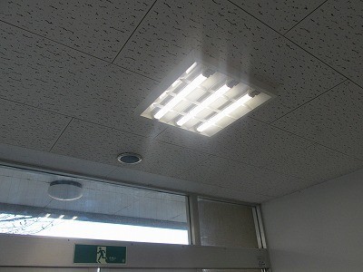 学校各所の蛍光灯をLEDに交換する工事が進行中です。