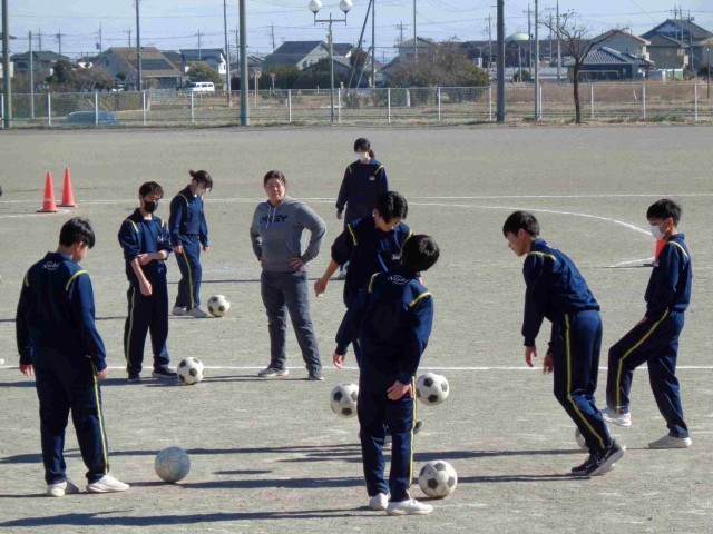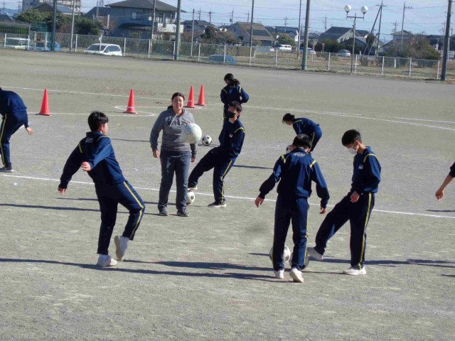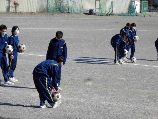 3年2組の保体の授業。とても寒い日でしたが、元気に外でパス練習やキックなどのサッカーの練習に取り組んでいました。上手くできてもできなくても、みんな笑顔で楽しそうに体を動かしていました。