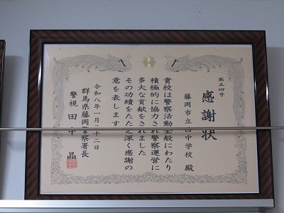 1月29日(木)藤岡警察署より感謝状拝受