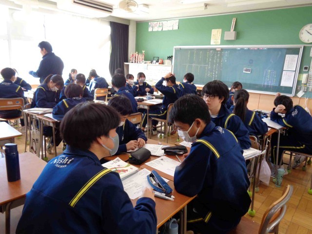 「わたしを束ねないで」という詩を学習中の3年生。今日の3年1組では、「各連に込められている筆者のメッセージを読み取り、自分の可能性を考えよう」というめあてで、グループで意見交流をし、それの全体で発表したりしました。グループでの話し合いがとても活発におこなわれていました。