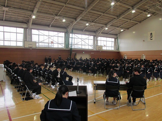 2月26日 生徒会年度末総会 公開日 2026/02/26 更新日 2026/02/26 今日の西中 生徒会年度末総会が開催され、今年度の生徒会活動の事業と決算が承認されました。ペーパーレスの意味も含め、生徒個々のタブレット端末を活用しての議事進行となりました。 また、生活委員会が考案した「守ってほしい西中生・スマホの約束」について提案があり、協力が呼びかけられました。