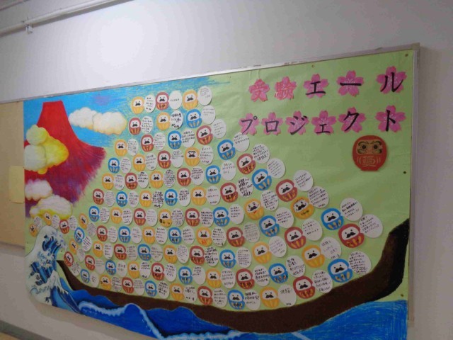 3年生が作成した掲示物が完成しました。かっこいいです。内容は「受験エールプロジェクト」。入試を終えた3年生から後輩のみんなに受験生の心得や頑張ってほしいことなどのアドバイスが書かれています。後輩の皆さんは是非参考にしてほしいですね。