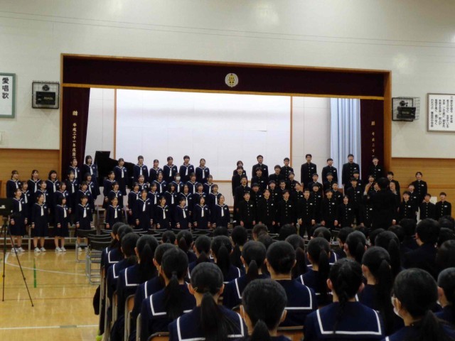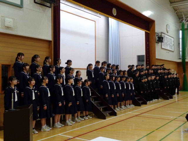 在校生が考え準備した「送る会」で卒業生を送り出します。部活動ごとのビデオメッセージや各学年からの合唱で3年生の卒業を祝います。1,2年生とも3年生のために心を込めて歌いました。お礼の3年生からの合唱も素晴らしかったです。