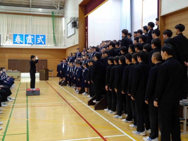 卒業式予行の後、生徒会主催の3年生を送る会「春霞式」を行いました。