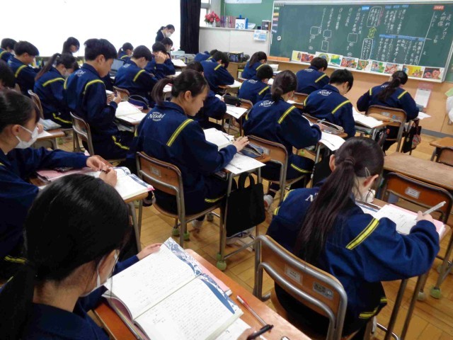 2年生の国語は太宰治の「走れメロス」を学習しています。今日の2年2組の授業では「これまで」学習したメロスの人物像を確認した上で、メロスの試練について調べました。文章をよく読み取り、一人一人がワークシートにしっかりと記述していました。