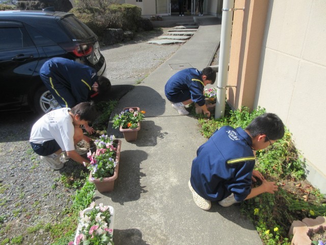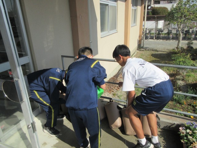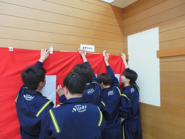 明日の入学式に向け、新2年生、新3年生が集まり、心を込めて、新入生を迎える準備をしました。