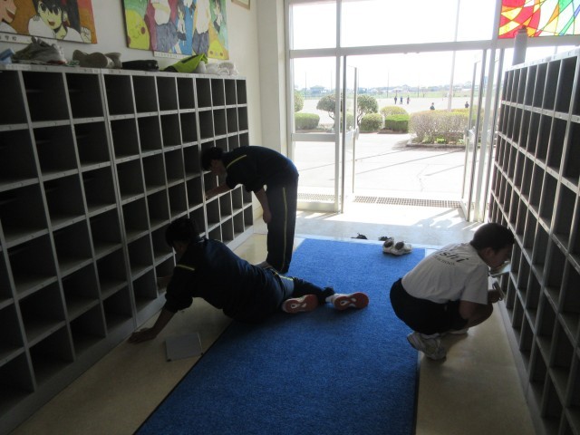 体育館、教室、廊下、トイレ、玄関、下駄箱、駐車場、外回りなど、ありとあらゆるところをきれいに掃除し、明日に備えました。