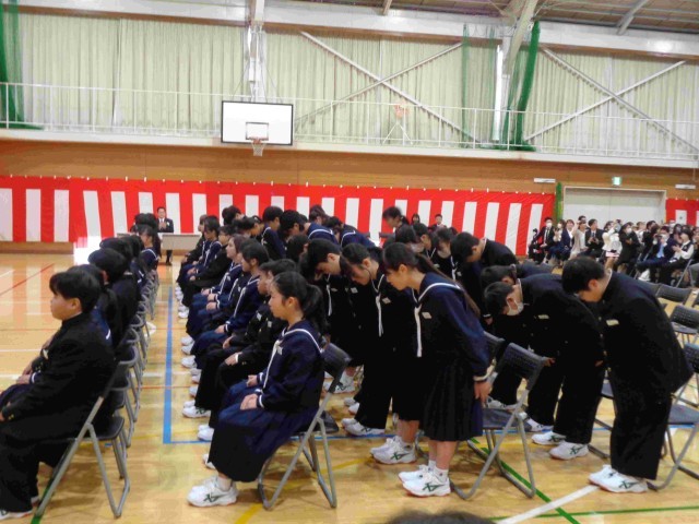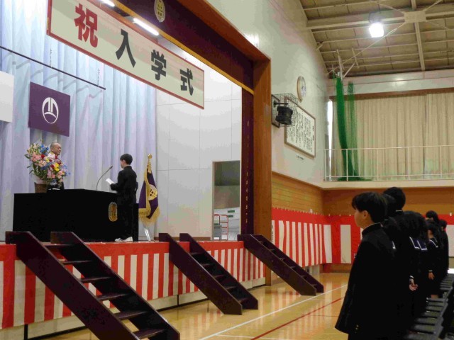 いよいよ入学式開始。温かい拍手で迎えられ、立派な態度で入学式に臨んだ新入生。いよいよ中学校生活のスタートです!!