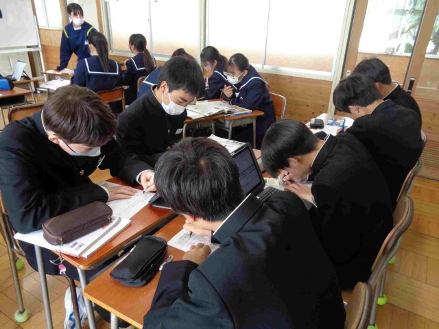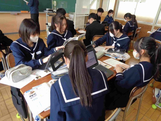 3年2組の社会科の授業。明治時代の終わり頃の日本の産業革命の始まりについて学習しました。現在よく耳にする有名企業の名が登場し、日本の近代産業が始まっていく様子をワークシートを使って調べました。今年度も社会科では教科書、資料集、タブレットなどの資料をよく活用して主体的に学習に取り組んでいくようにしていきます。