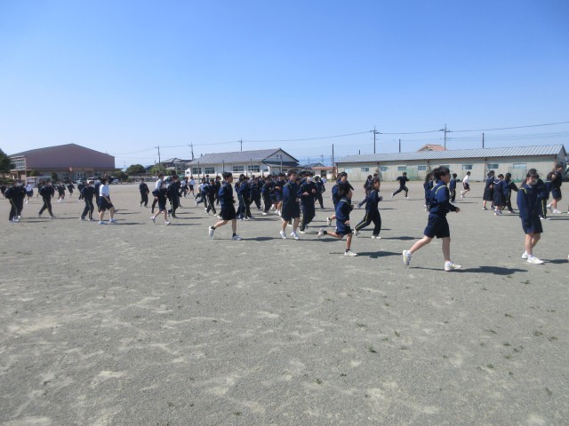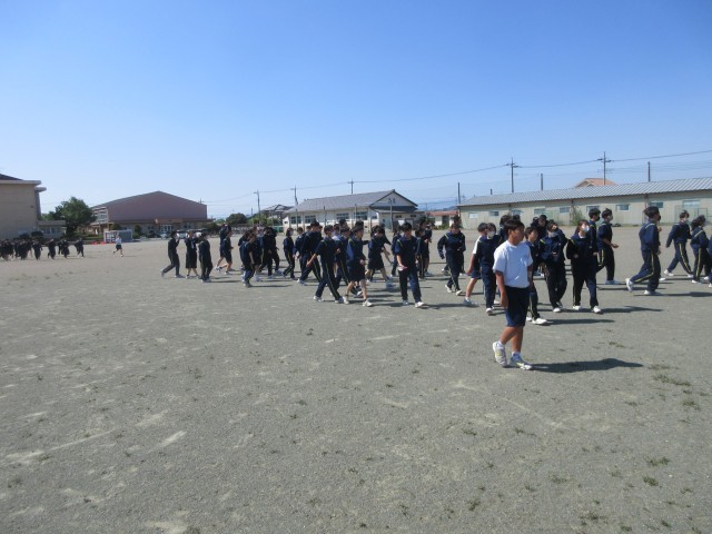 生徒は、黙って避難場所まで走り、すぐに整列し、人数確認を行いました。