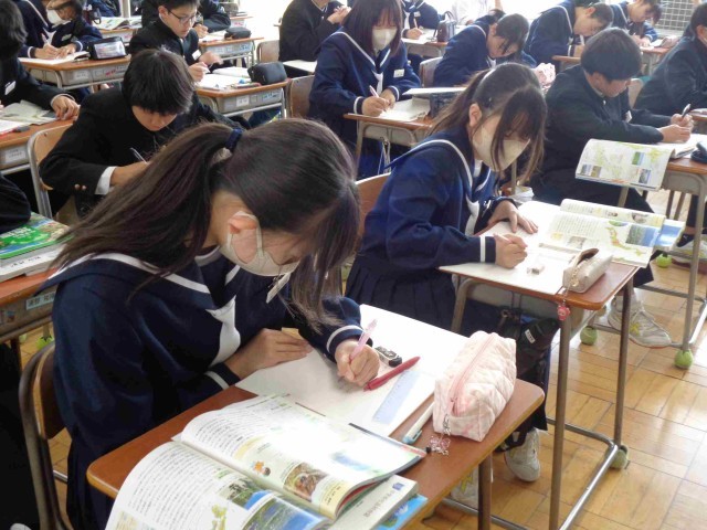 2年生の社会科は地理的分野から始まります。最初は日本の国土についての学習。今日は日本の山地・山脈について調べました。なぜ、日本の国土は山がちなのかな?分布にはどんな特徴があるのかな?どんな山地・山脈があるのかな?地図などの資料をつかって主体的に調べていました。