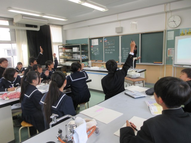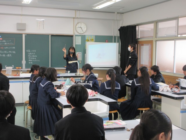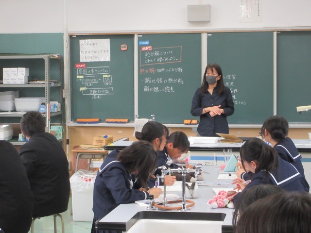 2年生の理科は、「熱分解についてくわしく確かめよう」のめあてのもと、金属の性質を利用し、熱分解することで、物質を取り出すことを学びました。生徒がわくわくしながら授業に積極的に参加していました。