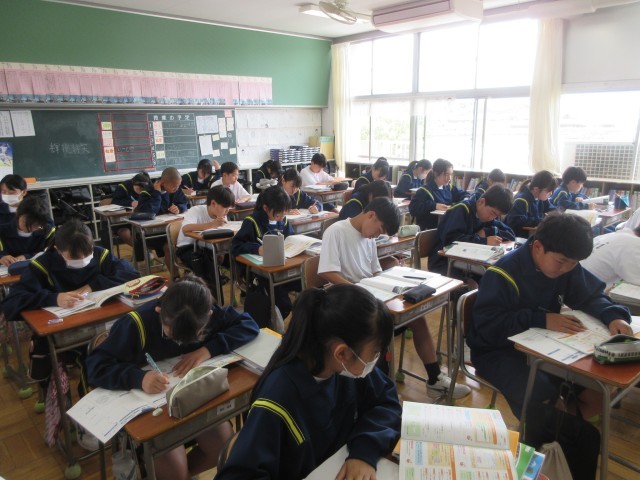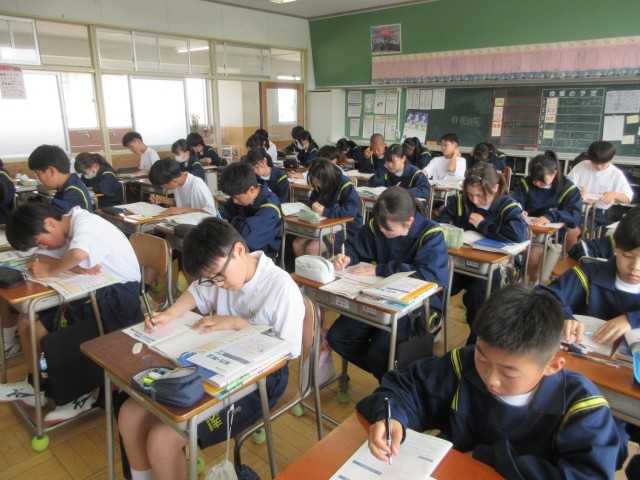 生徒は、ノートや教科書を見ながら真新しい社会ワークに挑戦していました。インプットしたものは、アウトプットすることで定着します。