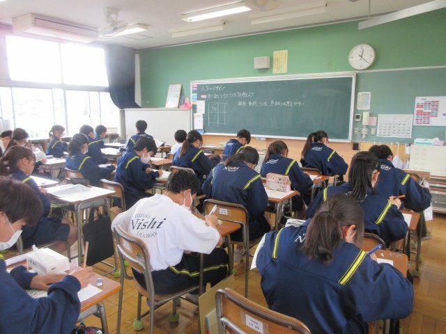 1年生の美術の授業は「見て楽しくなるアイディアを考えよう」のめあてのもと、文字をデザインしました。