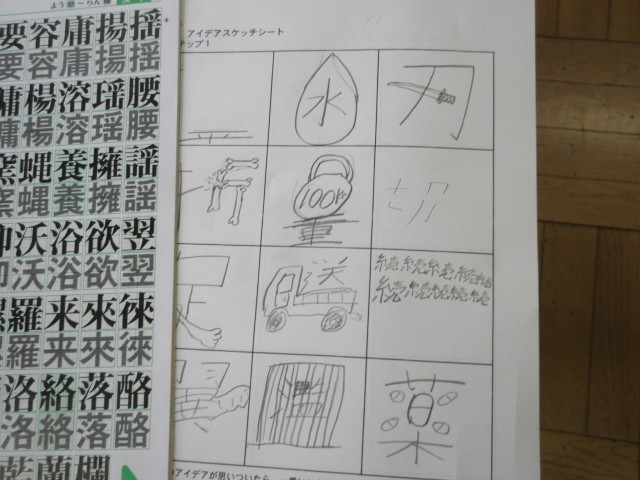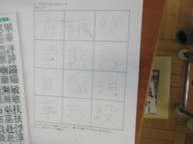 自分で好きな漢字を選び、その漢字の意味が伝わるような楽しいデザインを考えました。みんな頭の中が柔らかく、楽しいアイディアがたくさん出ました!