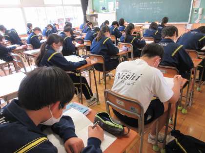 4月12日(火)授業の様子(3年3組数学) 公開日 2022/04/12 更新日 2022/04/12 今日の西中 3年3組の数学は、授業のオリエンテーションと1学年の復習を行いました。明日の実力テストに向け、真剣に問題を解いていました。