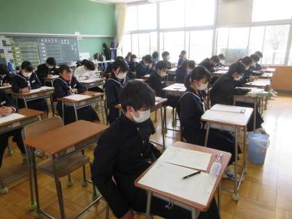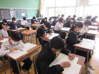 2年生も実力テストを行いました。2年生は、実力テストに向け、春休みに「5科の総整理」に取り組みました。取組の成果が発揮できたことと思います。(上:1組、下:2組)