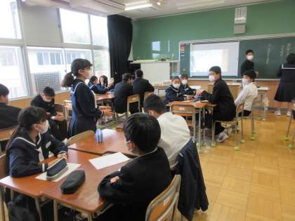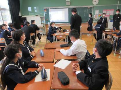 4月15日(金)学級旗デザイン決め(2年4組) 公開日 2022/04/15 更新日 2022/04/15 今日の西中 2年4組は、学級旗のデザインについて話し合いを行いました。学級旗はクラスの団結のシンボルです。様々なアイデアが出されていました。