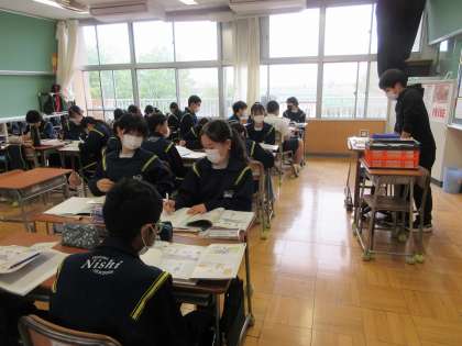4月15日(金)授業の様子(2年1組理科) 公開日 2022/04/15 更新日 2022/04/15 今日の西中 2年1組の理科は、学習のオリエンテーションでした。理科室の決まりや実験の約束を再確認しました。