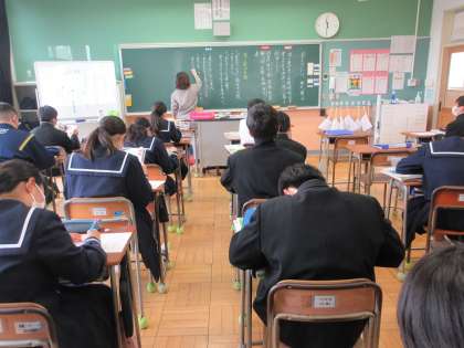4月18日(月)授業の様子(2年2組国語) 公開日 2022/04/18 更新日 2022/04/18 今日の西中 2年2組は国語で牟礼慶子さんの「見えないだけ」という作品を題材に詩について学んでいます。作品の中で使われている様々な表現技法に注目しながら、理解を深めていました。