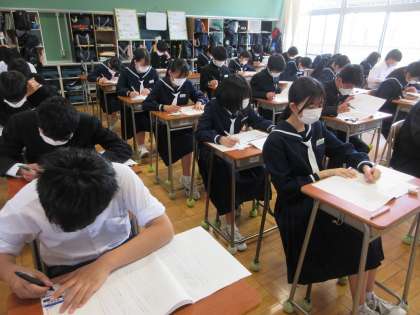 全国の中学3年生を対象にした「全国学力・学習状況調査」が実施され、本校でも、3年生が調査を行いました。この調査は、「全国の児童生徒の学力や学習状況を把握・分析し、教育施策の成果・課題を検証し、改善等に役立てる」ことを目的にしています。
