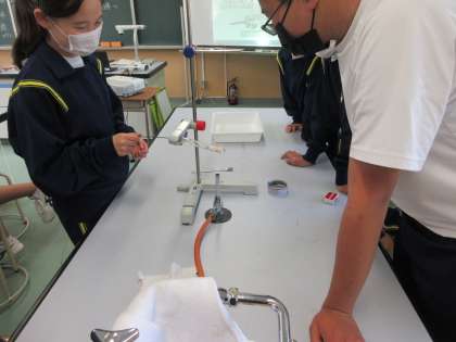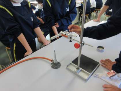 4月19日(火)授業の様子(2年1組理科) 公開日 2022/04/19 更新日 2022/04/19 今日の西中 2年1組は理科で化学変化について学習しています。生徒は、カルメ焼きの実験から、物質に熱を加えると、他の物質に変化することを学びました。今日は、酸化銀を加熱し、銀と酸素に分解することを実験を通して、確認しました。