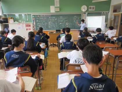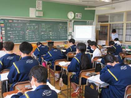 4月22日(金)授業の様子(2年1組数学) 公開日 2022/04/22 更新日 2022/04/22 今日の西中 2年1組は数学で単項式の乗法について学んでいます。乗法の基本的な考え方を学習した後、練習問題を行いながら学習内容の定着を図りました。