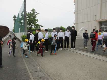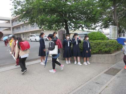訪問あいさつ 美土里小学校 公開日 2022/05/09 更新日 2022/05/09 今日の西中 美土里小学校出身の3年生14名が、母校を訪問し、挨拶運動を行いました。途中、小雨が降り出しましたが、中学生と小学生が元気に挨拶を交わしました。