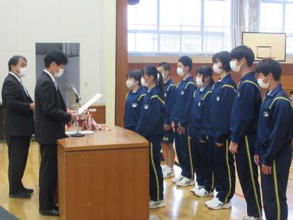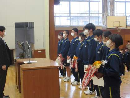 6校時、表彰・会礼を行いました。今回は、藤岡多野中体連春季大会で優勝及び入賞ぶやぶや生徒を中心に賞状を手渡しました。65名の生徒を呼名しましたが、返事が大変素晴らしかったです。