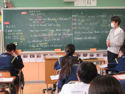 5月12日(木)授業の様子(3年3組英語) 公開日 2022/05/12 更新日 2022/05/12 今日の西中 3年3組は英語で現在完了について学んでいます。今日は、教科書の読解を行いました。マレーシア出身の大学生が、ハラール・フードについて説明している英文を全員で丁寧に読み取っていました。