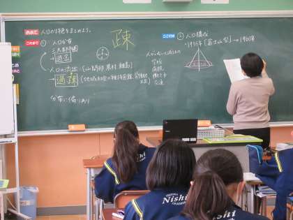 5月13日(金)授業の様子(2年2組社会) 公開日 2022/05/13 更新日 2022/05/13 今日の西中 2年2組は、社会で日本の地域的な特徴について学んでいます。授業では、日本の人口分布や人口構成を資料に、現状と課題について考察していきました。