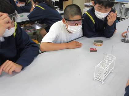 5月17日(火)授業の様子(2年4組理科) 公開日 2022/05/17 更新日 2022/05/17 今日の西中 2年4組は、理科で化学変化について学んでいます。今日は、金属であるマグネシウムリボンを加熱し、加熱前後の性質を比較しました。マグネシウムから放たれる眩しい光に歓声があがりました。