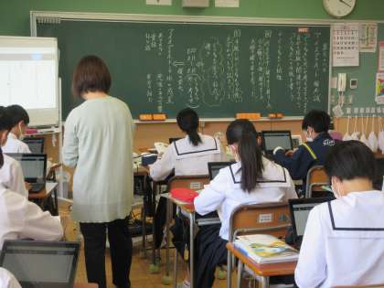 5月18日(水)授業の様子(2年3組国語) 公開日 2022/05/18 更新日 2022/05/18 今日の西中 2年3組は、アイスプラネットという小説を教材に読解を行っています。これまでは、場面ごとに登場人物の心情を考えてきました。今日は、登場人物に手紙を書く活動を行いました。居候でおじさんである「ぐうちゃん」の人間性や生き方にふれながら、じっくり考えていました。