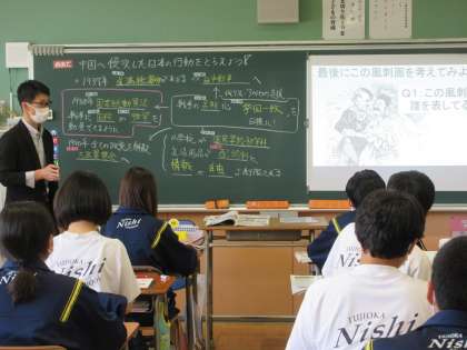 5月18日(水)授業の様子(3年2組社会) 公開日 2022/05/18 更新日 2022/05/18 今日の西中 3年2組は、社会で世界恐慌後の日本の中国への侵攻について学んでいます。日中戦争の広がりをとらえつつ、当時の日本及び中国の民衆の状況について考えました。戦争の長期化に伴い、国民生活がしだいに統制されていった状況を理解していました。