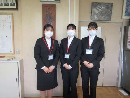 本日から3週間、3人の大学生が西中で教育実習を行います。3名とも西中学校の卒業生です。教科は、保健体育が2名、英語が1名です。後輩の生徒や職員との触れ合いの中で、教師の夢をさらに大きく膨らませてほしいです。