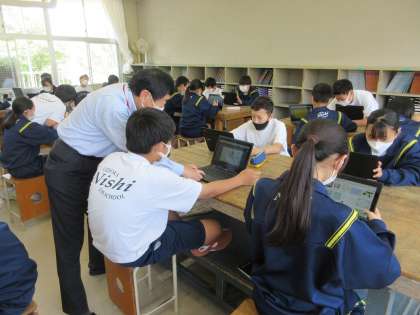 5月24日(火)授業の様子(1年2組美術) 公開日 2022/05/24 更新日 2022/05/24 今日の西中 1年2組は美術で絵文字に取り組んでいます。文字の意味を見る人に分かりやすく伝える工夫を考えながら、下書きを行っています。タブレットPCでイメージするイラストと文字を調べ、オリジナルの絵文字を創り出していました。