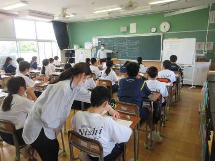 1年3組は、数学で累乗について学んでいます。累乗の計算について、練習問題を解きながら基本事項の定着を図りました。