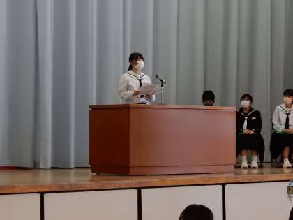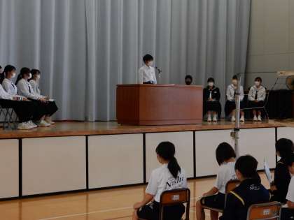 5月25日(水)少年の主張学年大会(1年生) 公開日 2022/05/25 更新日 2022/05/25 今日の西中 5校時、1年年が少年の主張学年大会を行いました。各クラスの代表9名が、体育館のステージの上に立ち、堂々と主張を展開しました。大きな会場での初めての主張とは思えない落ち着きがありました。
